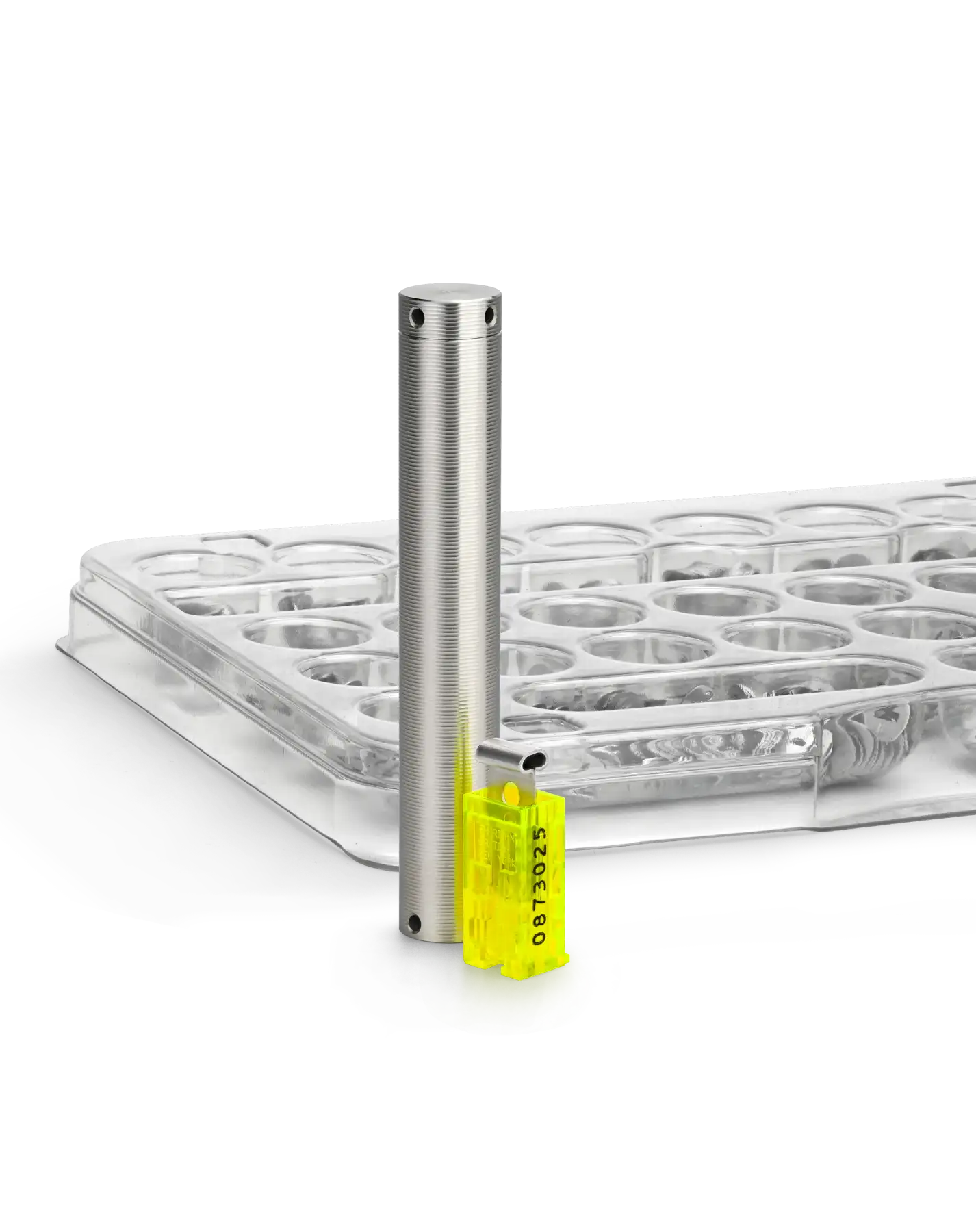The Seed24 is essentially the same product as the regular Capsule, with a few usability enhancements. The key differences are the holes for mounting the tamper-evident seal and the core that is not permanently attached to the capsule shell cap, allowing for more flexibility.